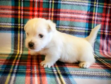 All of our puppies are pure breed west highland white terriers. They are registered with either AKC or ACA and customer reserves all breeding rights. We will not place them until they are at least 8 weeks old. They are UTD on worming, 2 rounds of vaccinations, dew claws removed, microchipped, and spoiled. All puppies are vet checked and have health certificates. We guarantee our puppies for 1 year against genetic defects.